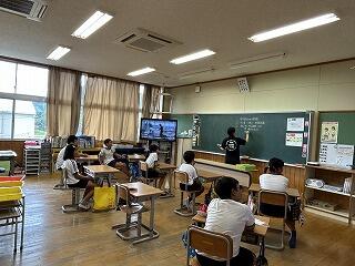 1学期の終わりに5・6年生に、夏休み中には先生方に、不審者が侵入可能な出入口等や侵入後の避難の在り方などについて考えてもらいました。その研修をもとに、今日は避難訓練を実施しました。