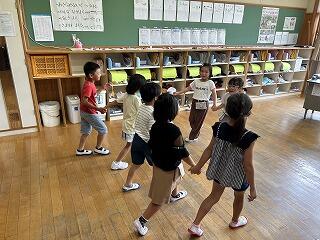音楽の授業でわらべ歌を取り扱うことがありますが、授業は1学期に終わっていたようで、どうやら自然発生的に楽しみ始めたようです。
