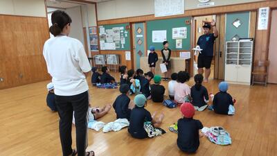 プール開きがありました。命にかかわるので安全に水泳の学習に取り組むことを確認しました。1年生は初めてでしたが、楽しく元気に取り組めていて安心しました。自己新記録を作るように頑張るぞ!!」