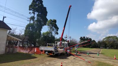 登り棒が古くなっていたことから、都農町教育委員会に相談し、新しく設置していただきました。週末に基礎の部分を仕上げてから使えるようになるようです。色もとてもきれいで、気持ちが盛り上がります。本当にありがとうございます。