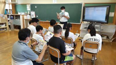 都農中学校の教頭先生に来ていただいて、都農中学校の魅力をお話しいただきました。