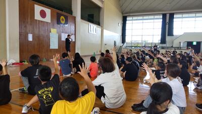教頭先生の進行で、「後だしジャンケン」「だるまさんがころんだ」「伝言ゲーム」「新聞大好き折り返しリレー」「ピラミッドジャンケン」など子どもも保護者も教職員も一緒に”みんなで笑顔”をキーワードに楽しみました。たくさん動き、たくさん笑い、たくさん応援し、たくさん汗をかいた素敵な時間となりました。ご参加いただいた保護者の方々、本当にありがとうございました。
