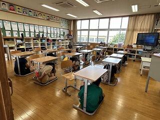 これまでの避難訓練は、1回目の揺れが収まったらすぐに屋外へ避難していましたが、大地震の場合、数回余震が繰り返されるため、すぐに避難をするのは危険なのだそうです。だから訓練の際も、数回の余震に対応する練習をするのが望ましいのだそうです。