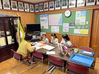 今日来た子どもたちは、自分たちが作成した都農町のポスターについて話を聞きにきました。