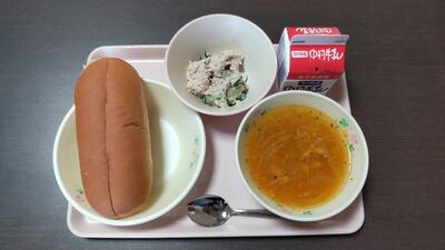 【背割りパン、牛乳、キャロットスープ、ツナサンドの具】