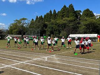 分校の運動会の予行練習から帰ってくると、運動場で5・6年生が本番前の最後の練習をしているのが見えました。