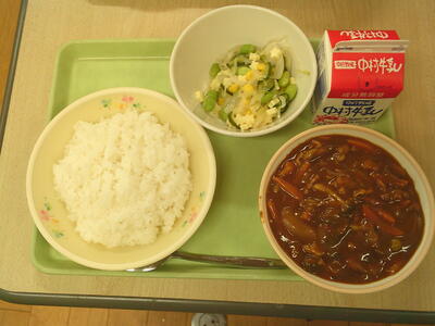 ☆ごはん ☆牛乳 ☆ポークハヤシライス ☆あおまめとコーンのサラダ です。