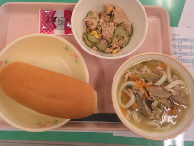 ☆ミニコッペパン ☆牛乳 ☆五目うどん ☆ツナとれんこんのサラダ ☆マーシャルビーンズ