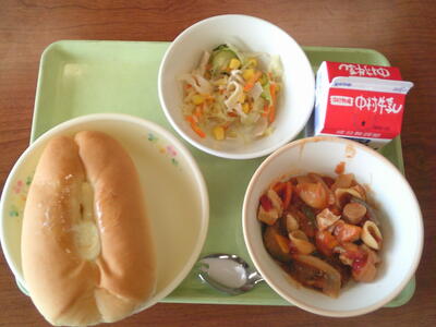 ☆マヨネーズパン ☆牛乳 ☆ラタトゥイユ ☆フレンチサラダ マヨネーズパン懐かしくないですか?