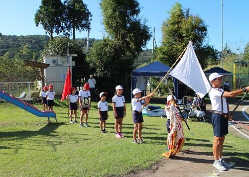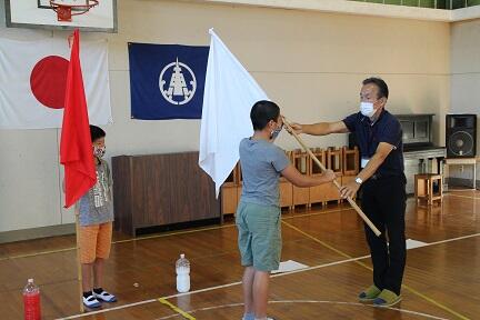 今日の朝の時間、結団式を行い、赤団・白団を決定しました。