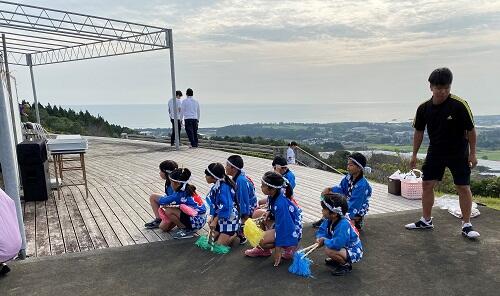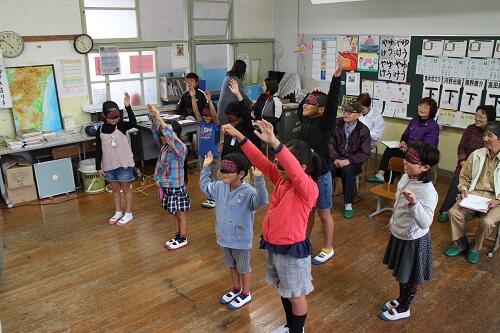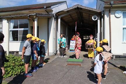 都農町出身で南九州唯一のちんどん屋、「花ふぶき一座」のみなさんが内野々分校へやってきました。生の演奏を目の前で聴くことができて、子どもたちも大満足でした。