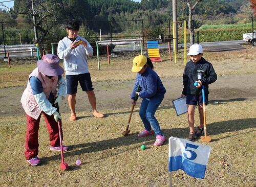 地域の高齢者の方々とグラウンドゴルフをして楽しみました。