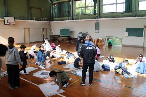 3学期の交流学習は、都農東小の1・2年生が分校に来て一緒に学習します。とても楽しく賑やかな一日になりました。