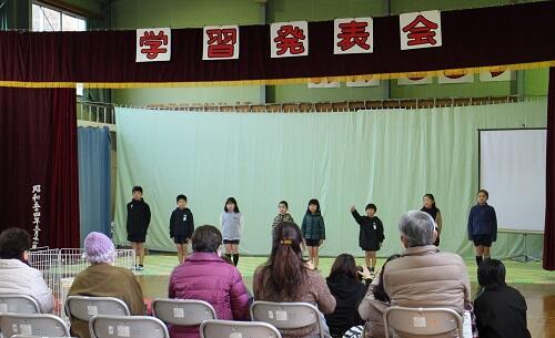 今年の学習発表会は、群読、作文発表、総合的な学習で学んだ都農町についての発表、劇「本当の宝物は?」、マット運動、跳び箱、縄跳び、合奏、合唱をがんばりました。盛りだくさんの内容で、子どもたちの一生懸命な発表にたくさんの拍手をもらいました。