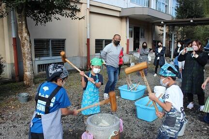 今日、午前中に持久走大会、午後からもちつき大会を行いました。持久走では、みんな記録を伸ばすことができました。もちつき大会では、リズムよく上手に餅をつくことができました。充実した一日でした。