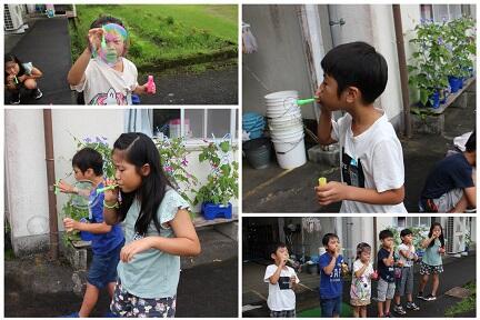 1・2年生が生活科の学習でシャボン玉遊びをしました。
