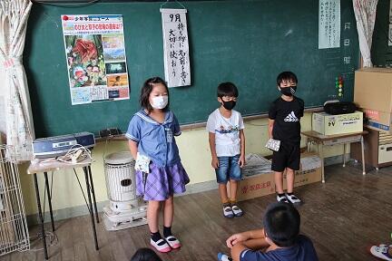 9月3日は今年度、初めての参観日でした。参観授業では、児童が夏休みに作った作品や自由研究をみんなの前で発表しました。ちょっと緊張していたようです。