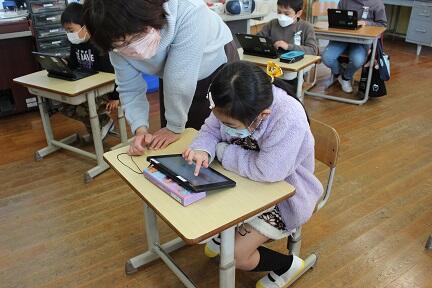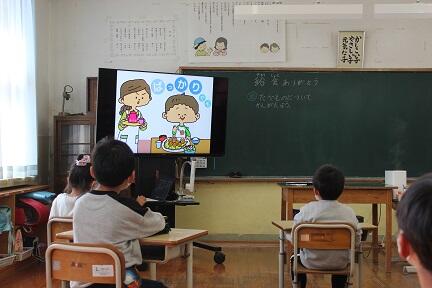 食に関する指導を行いました。タブレットを使って食物を赤黄緑の3つに分ける作業も行いました。