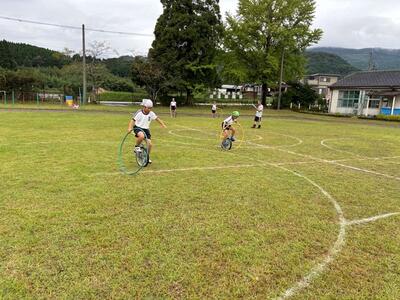雨が心配されましたが、時間を早めにずらして全体練習を行いました。大玉転がしや玉入れ、一輪車などの動きを最終確認したところです。元気いっぱい一致団結して頑張っています。運動会当日が晴れますように!!!