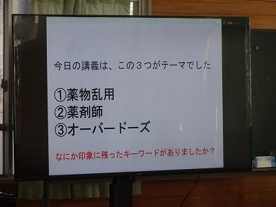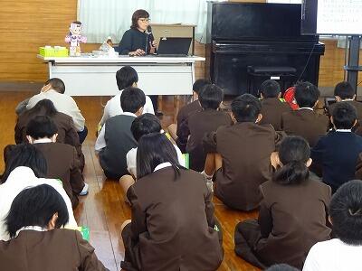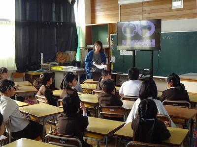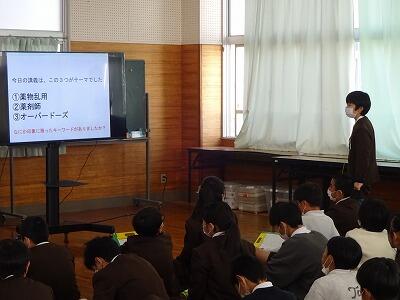 11月20日(木)4校時、6年生を対象に「薬物乱用防止教室」を実施しました。学校薬剤師の先生をお招きして、多目的ホールでお話を聞いたり動画を視聴したりしながら、薬物乱用の危険性やどのようなことを心がけていくとよいかについて考えました。いろいろな情報が簡単に手に入れられる時代に生きる子どもたちにとって、とても大切な学習の機会となりました。