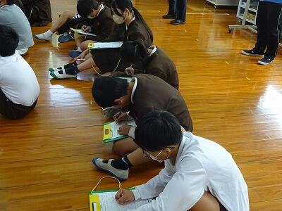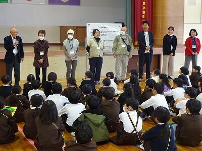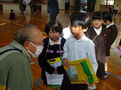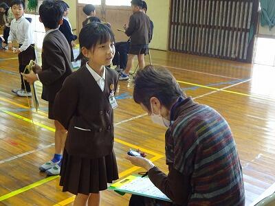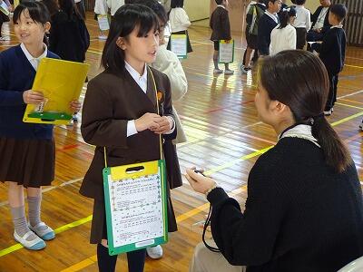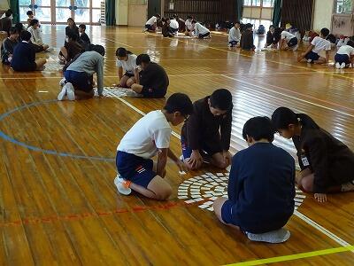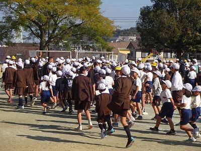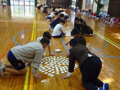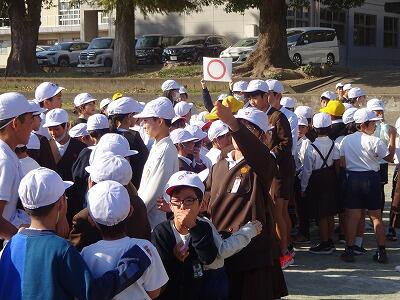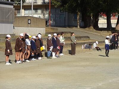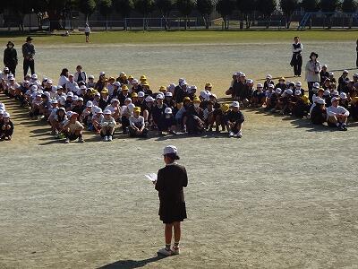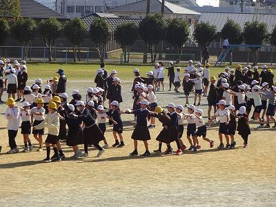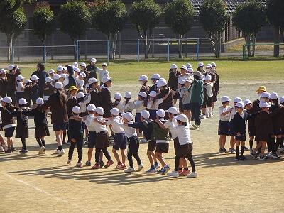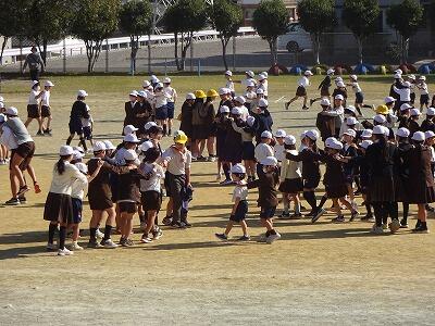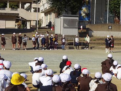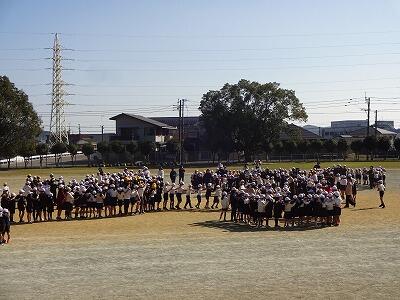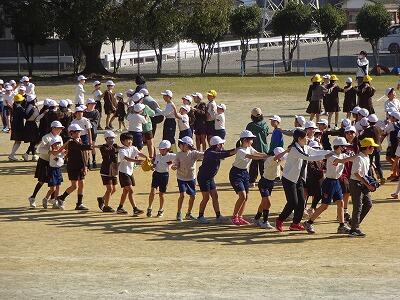 11月26日(水)3校時、運動場で全校集会をしました。いい天気の中、集会委員会の計画・準備・進行のもと、前半は異学年構成の縦割りグループでの「〇✕クイズ大会」、後半は「ジャンケン列車」を楽しみました。学年を超えて声をかけ合ったり、助け合ったりしながら、笑顔があふれる時間となりました。