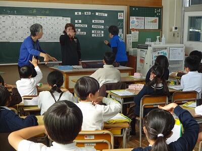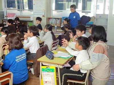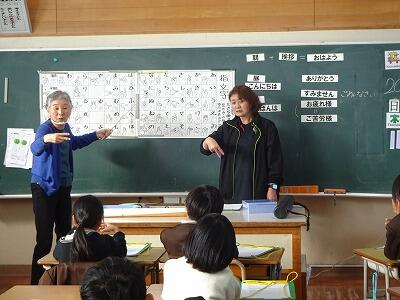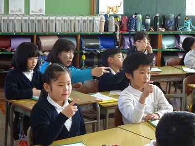 11月14日(金)20日(木)の2回にわたって、3年生は総合的な学習の時間で「手話」について学習しました。手話サークル「ひむかい」のメンバーの方を講師としてお迎えして、聴覚障がいの方々の生活についてお話を聞いたり、手話のあいさつや指文字を教えていただいたりしました。それぞれ手話や指文字の成り立ちについても教えていただき、子どもたちは関心をもって取り組んでいました。
