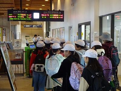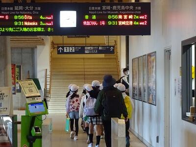 4年生は日向市駅7:58発の電車に乗って、宮崎市の科学技術館に出かけていきました。