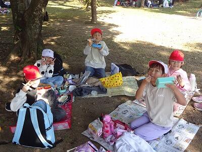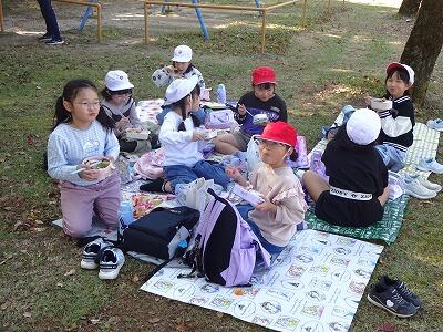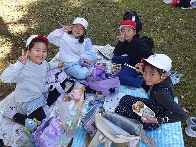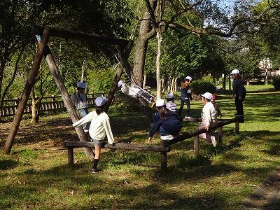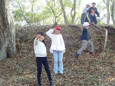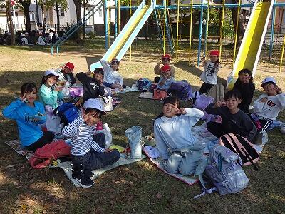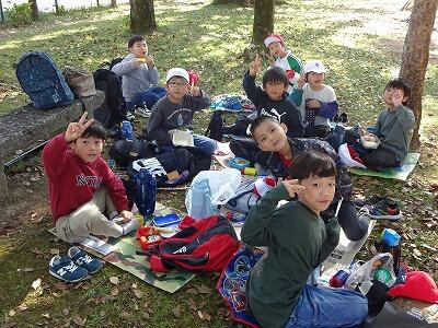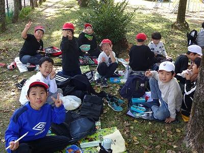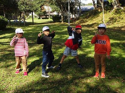 1年生は学校上の慰霊塔に行ってどんぐりを拾い、若宮公園に行って松ぼっくりを集めました。生活科で使います。若宮公園に行った時にはもうお弁当を食べた後でしたので、遊んでいる様子を撮りました。