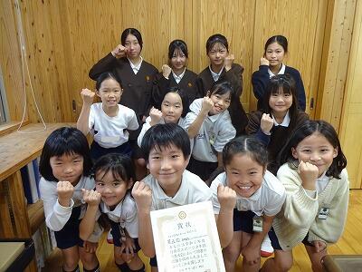 11月24日に開催された令和7年度日向市スポーツ少年団秋季大会「ミニバスケットボール」競技において、本校の日向富高ミニバスケットボールクラブが第5位の成績を収めました。メンバーで賞状を校長室に持ってきてくれました。キャプテンは「1つでも多く勝てるようにがんばります」と話してくれました。これからも応援しています。