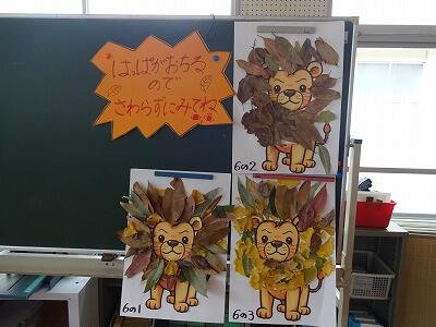 12月2日(火)今年も残すところ、あと1ヶ月です。学校の木々も黄色や赤に色づき始め、たくさんの葉が舞い落ちています。子どもたちはその葉っぱを集めて、クラスごとにライオンのたてがみにして楽しんでいます。これは美化委員会の子どもたちの企画です。おもしろいですね。そんな中、児童クラブ前にある花壇のヒマワリは、まだ立派な花を咲かせています。不思議な感じです・・・・。休み明け、市内そして本校でもインフルエンザの罹患者が急増しています。保護者の皆様、ご家庭でも感染予防対策をよろしくお願いします。(マチコミメールでもお知らせしています)
