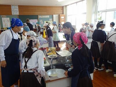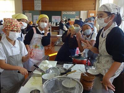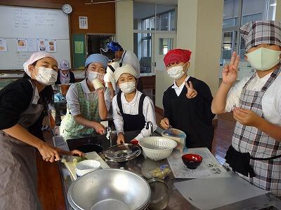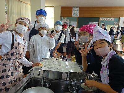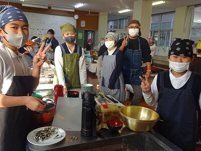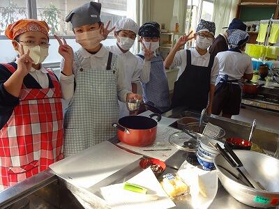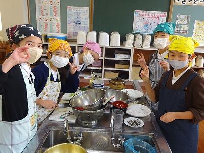 12月3日(水)1~3校時、5年1組は家庭科室で「ごはんとみそしる」の調理実習をしました。栄養教諭の先生のアドバイスも受けながら、各グループ、透明なガラス鍋で中の様子を観察しながらごはんを炊き、ねぎ・大根・あげなどが入ったみそしる作りに取り組みました。あるグループのを試食させてもらいましたが、とても上手にできていておいしかったです。(先週の5年2組も上手でした)。ぜひ、おうちでもチャレンジしてほしいと思います。