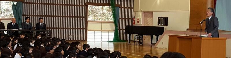 始業式では、校長先生が、「冬休みは楽しかったですか。1番うれしいのは、富高小学校のみなさんが元気に3学期を迎えられたことです。」と話されました。また、「今年はねずみ年です。ねずみ年は、『繁栄する』『貯金がたまる』とも言われています。みなさんもねずみ年にあやかって、富高小学校で楽しい思い出をつくり、心の貯金をたくさんためてください。」と話されました。