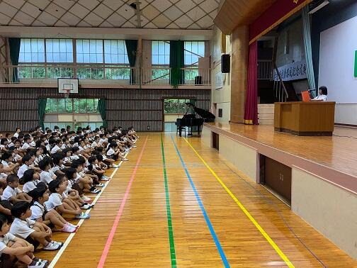 校長先生が、「今日から2学期です。大リーグで活躍したイチロー選手は『特別なことをするために、誰よりも早く球場に行く、道具を大切にするなど、普段どおりの当たり前のことをする』と話したことがあります。当たり前のことを当たり前にすることは意外と難しいです。だからこそ、2学期は当たり前のことがきちんとできることを目標にがんばりましょう。」と話されました。