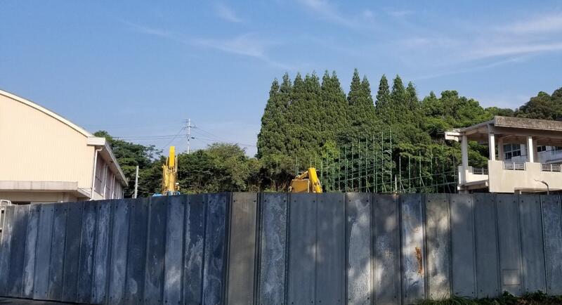 新管理棟建設に伴い、工事車両の通行上、体育館前のロータリーも撤去されました。