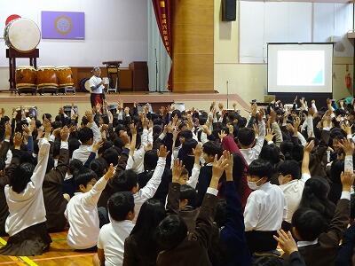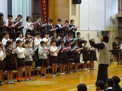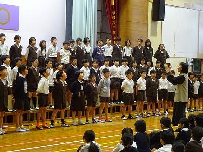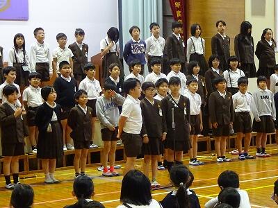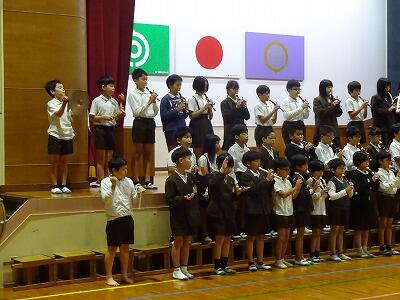 10月31日(金)3校時、全校児童が体育館に集まって、音楽集会が行われました。11月6日(木)に開催される「ひまわりフェスティバル」で4年生が合唱・合奏を発表するのですが、今日はそのリハーサルです。真剣な表情でこれまでの練習の成果を披露する4年生、その完成度の高さに大きな拍手が起こっていました。聞いていた他の学年の子どもたちからも称賛の声がたくさん聞かれました。フェスティバル本番の発表が楽しみです。