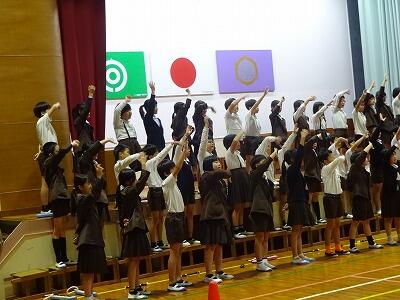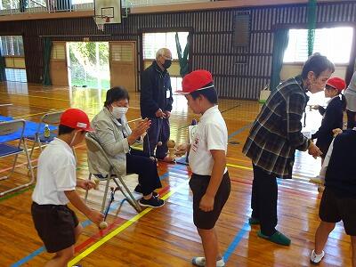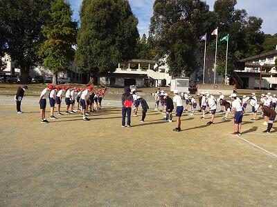 11月26日(水)3校時、運動場で全校集会をしました。いい天気の中、集会委員会の計画・準備・進行のもと、前半は異学年構成の縦割りグループでの「〇✕クイズ大会」、後半は「ジャンケン列車」を楽しみました。学年を超えて声をかけ合ったり、助け合ったりしながら、笑顔があふれる時間となりました。