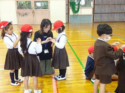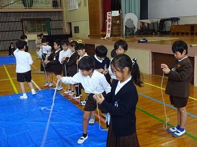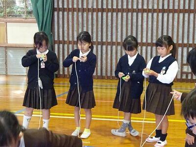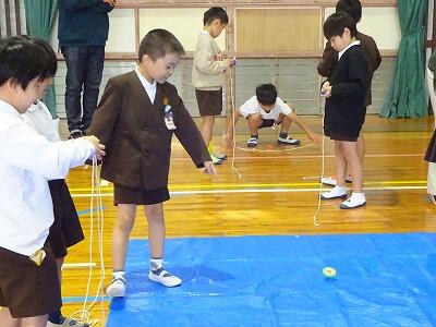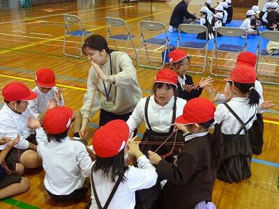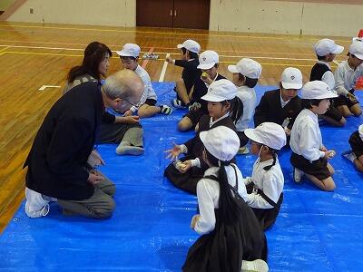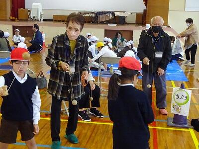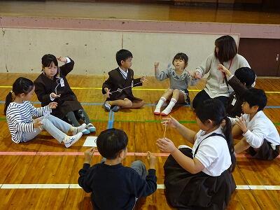 11月6日(木)3・4校時、1年生は体育館で生活科「むかしのあそびにちょうせん」に取り組みました。今日は校区内各地区の民生委員の皆様方を中心に、子どもたちの遊びをサポートしていただきました。1年生は「あやとり」「おりがみ」「けんだま」「おてだま」に挑戦し、地域の方といっしょに遊ぶことができました。楽しそうな笑顔がたくさん見られた時間となりました。
