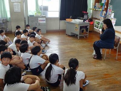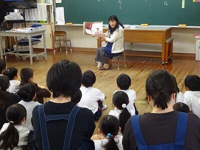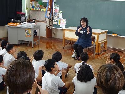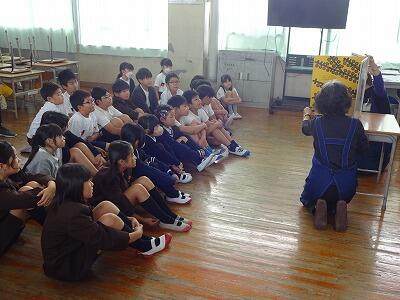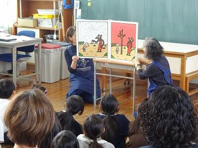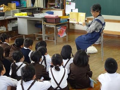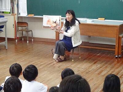 11月10日(月)2・3・4校時、市立図書館から図書ボランティアの皆さんをお招きして「お話会」を実施しました。本日は1・2・3年生の「お話会」、各教室に分かれて入って、絵本の読み聞かせや手遊び歌などをしてくださいました。子どもたちはお話の世界に引き込まれたように、熱心に聞き入っていました。「読書の秋」、これを機会に子どもたちがたくさんの本を手に取ってくれるとうれしいです。次回は17日(月)に4・5・6年生です。