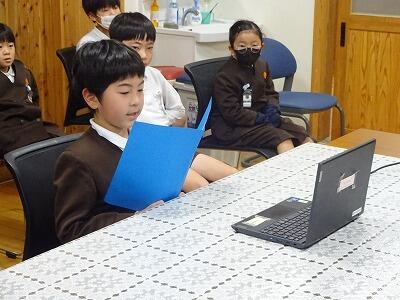 12月24日(水)2学期終業の日です。1校時、終業式をオンラインで行いました。まず校長から、2学期の振り返りと冬休みのミッションについて話をしました。その後、2年生の代表児童が作文発表を行いました。2学期がんばったことと今後の目標について、大事にしている言葉を紹介しながらのすばらしい発表でした。式終了後、生徒指導担当から冬休みの過ごし方の注意点について話がありました。それから、読書感想文・感想画・河川愛護ポスターコンクール入賞者の表彰を行い、最後に本日、勤務最終日を迎える講師の先生のごあいさつをいただきました。明日からの冬休み、「元気に、楽しく、安全に」過ごしてほしいと思います。保護者の皆様・地域の皆様、2学期の学校に対するご理解ご協力ありがとうございました。