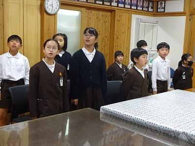 12月11日(木)6年生の修学旅行スタートです。7:10出発式、代表児童がこれから2日間の期待と展望を述べました。バス2台で鹿児島市へ向かいます。