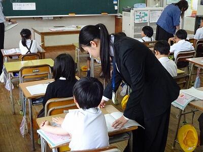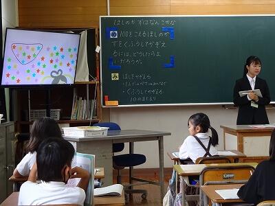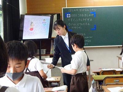 今週は、本年度採用の初任者の第1回目の研究授業を計画しています。6月10日(火)2校時は、2年生算数「100をこえる数」の授業が行われました。教科書の挿し絵にある「たくさんの星を数えるにはどうしたらよいか」をめあてとして、子どもたちは10や100のまとまりを作りながら、一生懸命に数えていました。担任もこれまでしっかりと準備をして今日の授業に臨んでいました。