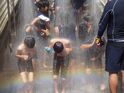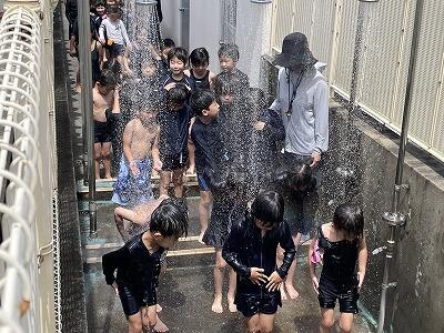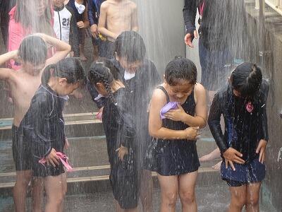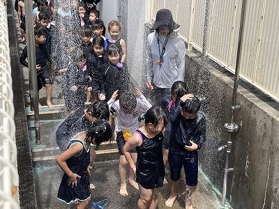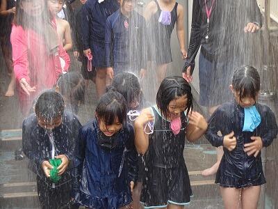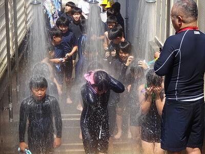 今週は各学年の「プールびらき」週間となっていましたが、週明けからの連日の雨と肌寒さで実施を見送っていました。6月13日(金)本日ようやく雨も上がり、1・2校時の2年生を皮切りに、3・4・6年生がプールびらきを行いました。