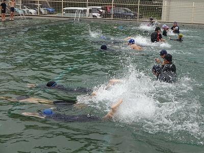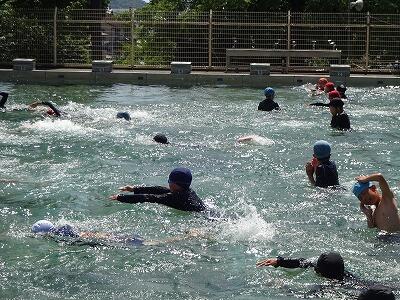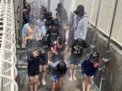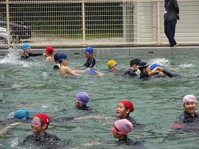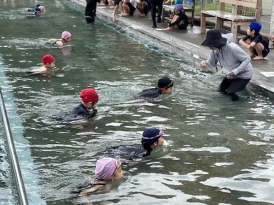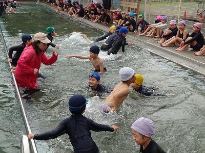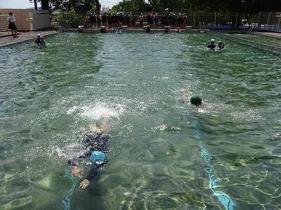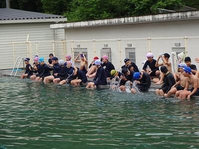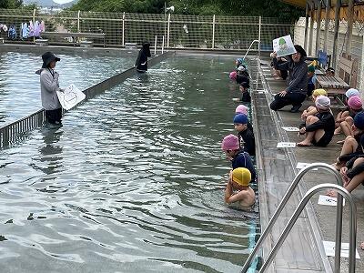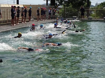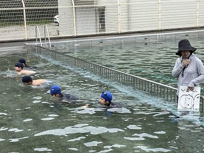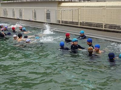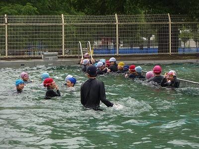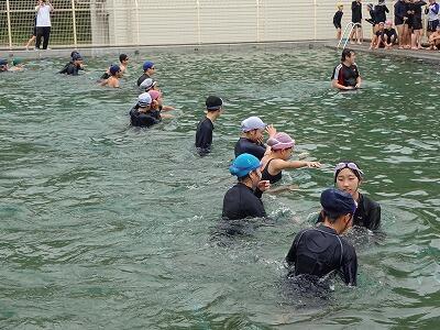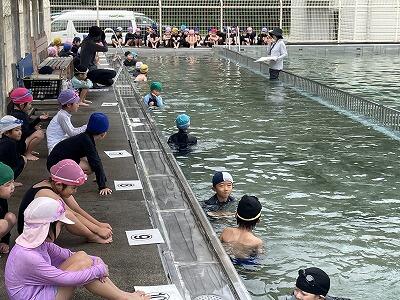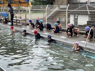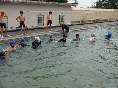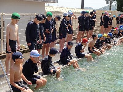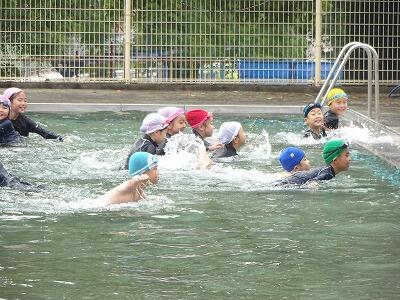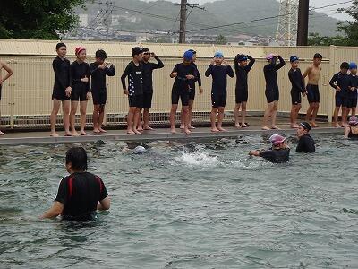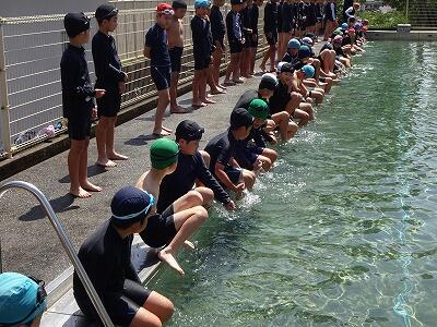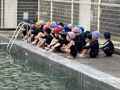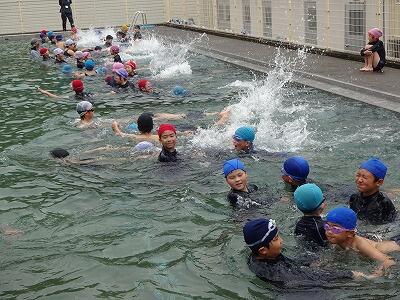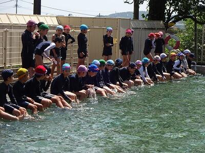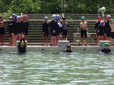 6月16日(月)3校時、5年生が初めてのプールの日でした。先週は3回計画していたにもかかわらず、どの日も天候不良で見送り。今日は暑さを感じる日射しで、子どもたちは張り切って学習に臨みました。水慣れをした後、現段階でどれぐらい泳げるかに挑戦しました。これからの学習で、自分の記録を伸ばしていってほしいと思います。