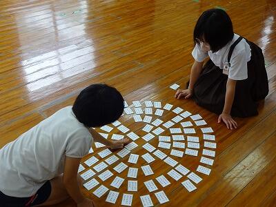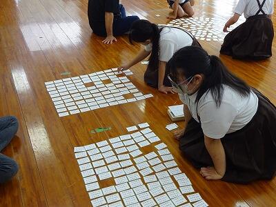 本年度も夏休み期間中の8月22日(金)午後に「第49回牧水かるた大会」が開催されます。それに向けて、出場希望者の練習が始まりました。昼休み時間に多目的ホールに集まり、担当の先生方のサポートで楽しみながら、少しでも多くの札がとれるように練習しています。かるたをとおして、たくさんの牧水の短歌に触れてほしいです。