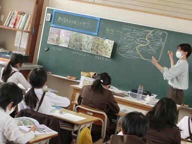 4年生は、春の生き物を探しに外に行きたかったのですが、雨残念。そこで、春から子ども達が連想するものを確かめ合っていました。