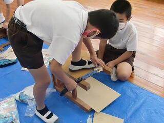 2年生、おもちゃ作りの方法をタブレットで調べていました。