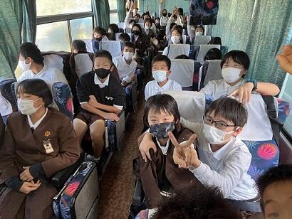 11月10日、澄みきった秋晴れのもと、6年生が修学旅行に出発しました。行き先は宮崎方面。現在フェリーに乗って、船上の旅行を楽しんでいるようです。