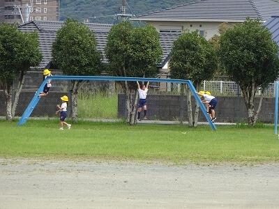 9月18日(木)今日は時々、曇り空も見えました。昼休み時間の暑さ指数は昨日よりいくらか低めだったので、20分間、外遊びをすることができました。時間になるとたくさんの子どもたちが運動場に駆け出し、元気いっぱい遊んでいました。久しぶりに歓声が運動場に響き渡っていました。