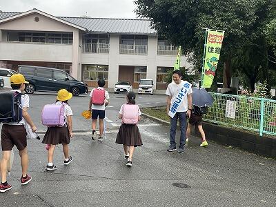 9月25日(木)朝、西村市長があいさつ運動に来てくださいました。本年度3回目、時折、雨がパラつく天気でしたが、正門前で子どもたちに「おはようございます!」と声をかけてくださいました。子どもたちもうれしそうな表情であいさつをしていました。市長、ありがとうございます。