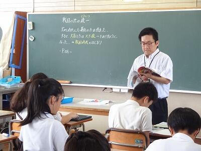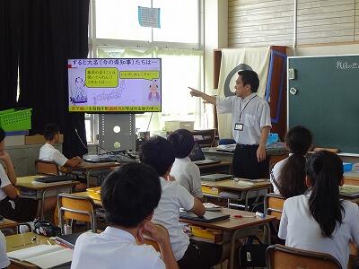 9月26日(金)2校時、6年2組で「ひなた+(プラス)」の授業参観がありました。これは本校の研究主任でもある6年担任が、北部教育事務所の指導主事の先生のサポートを受けながら、社会科における教材研究等を深め授業改善を図っていくという取組です。子どもたちも「戦国時代の始まり」について、資料を活用しながら真剣な表情で授業に取り組んでいました。